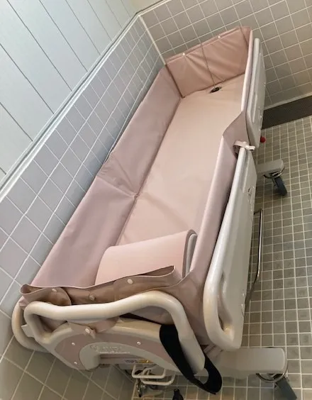 従来のシャワー浴では得られにくかった「お湯に浸かる感覚」を、安全な姿勢で体験できる点も、この設備の大きな魅力のひとつです。